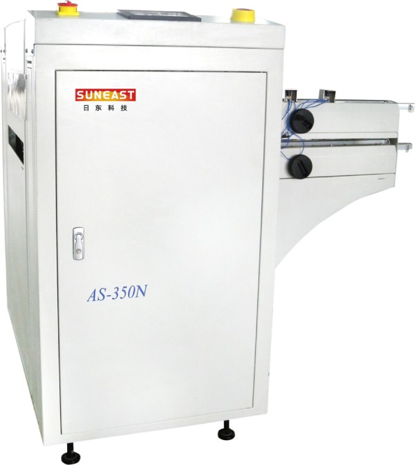 PCB儲板機介紹:PCB自動暫存、供料,平衡前后段生產量;PCB暫存區有20個停板區可供停板;PLC+觸摸屏程序控制,在觸摸屏上可切換先進先出或先進后出功能。