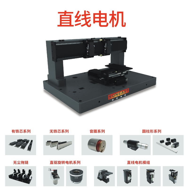 日東科技直線電機產品包含無鐵芯、鐵芯、音圈、圓柱形、直驅旋轉電機、磁力彈簧、直線電機模組、驅動器八大產品系列,在半導體制造、電子組裝、FPD、生物醫療、醫學影像、數字印刷、精密激光加工等行業有著非常成功的應用。期待新老客戶蒞臨我們的展位參觀指導!