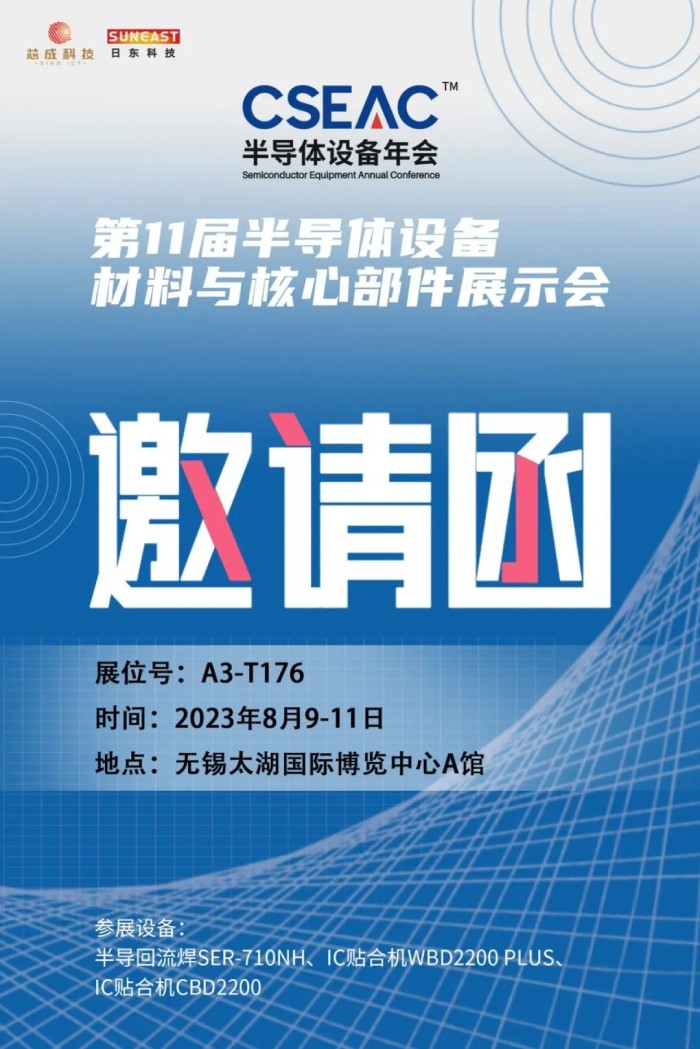 日東科技受邀參加本屆展會,將展出半導(dǎo)體專用回流焊、半導(dǎo)體封裝設(shè)備“IC貼合機(jī)”,并在8月10日上午的專題活動:新品發(fā)布專場,進(jìn)行IC貼合機(jī)的新產(chǎn)品發(fā)布,歡迎您蒞臨日東展臺和新品發(fā)布會場,與我們面對面溝通交流!