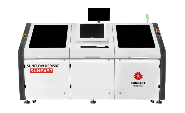 日東科技“雙電磁泵選擇性波峰焊”國內首創電磁泵技術,Z軸獨立升降,雙泵可根據程序設置獨立運動,在有效提升產能的情況下擁有更大的靈活性。設備全程顯示焊接狀態,雙焊接噴嘴間距自動調整。