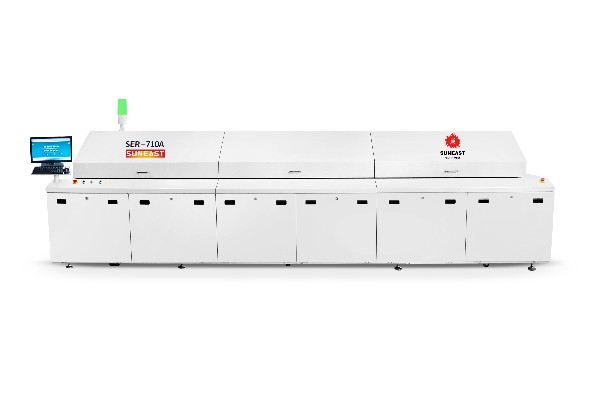 真空回流焊在焊接區(qū)抽真空,防止焊接氣泡的產(chǎn)生,升溫區(qū)、保溫區(qū)和冷卻區(qū)是非真空;