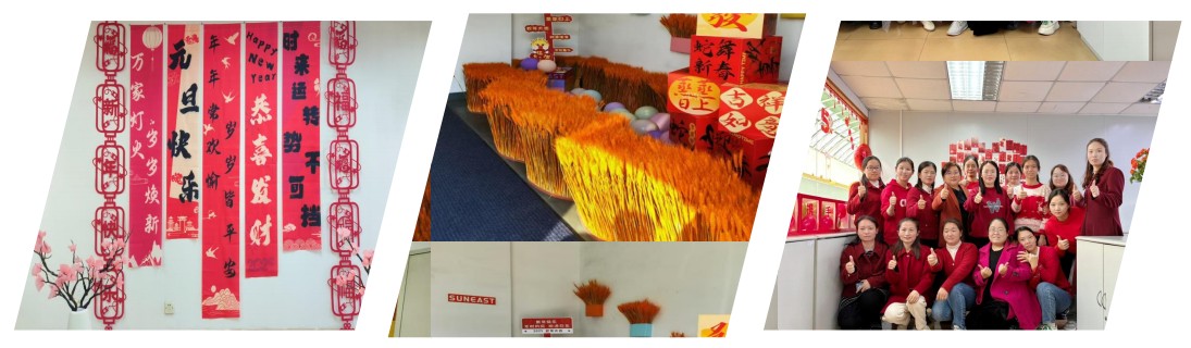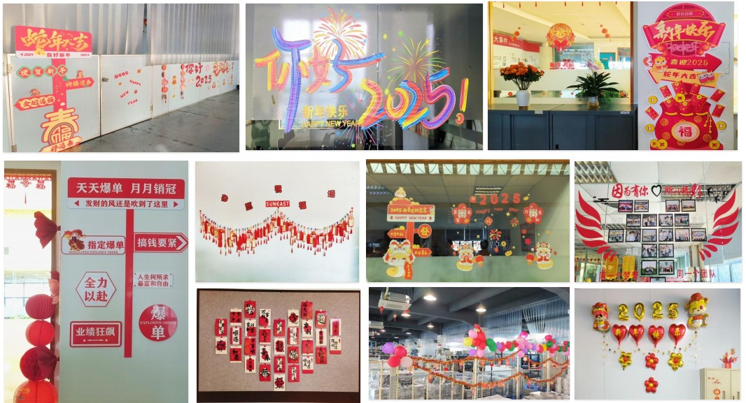 歷添新歲月,春滿舊山河。蛇年臨近,為激發(fā)員工活力及創(chuàng)造力,營造歡樂活潑的節(jié)日氛圍,公司于2024年12月27 日舉辦了“迎新春慶元旦部門布置評比競賽”。各個部門紛紛發(fā)揮創(chuàng)意,每個角落都精心布置,洋溢著新年的喜慶和溫暖。此次評比活動不僅是對公司文化的一次生動詮釋,也是全體員工向新年獻上的一份真誠的祝福。