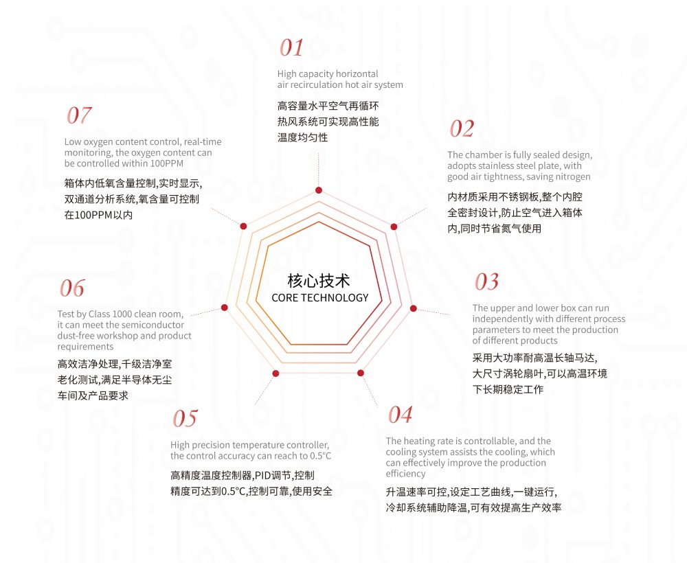1、 高容量水平空氣再循環熱風系統可實現高性能溫度均勻性;