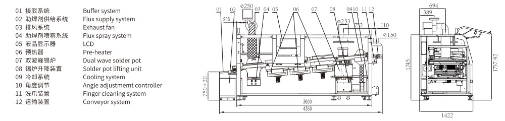 ●錫爐采用外熱式加熱,錫爐內(nèi)膽采用鑄鐵制作,內(nèi)表面防腐蝕處理,兩個(gè)低流速噴口、低氧化量設(shè)計(jì);
