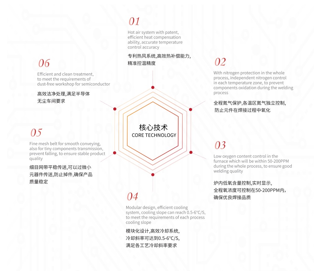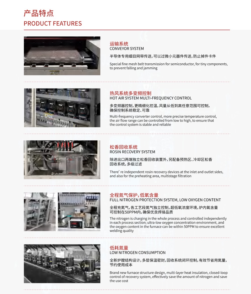 3、 爐內(nèi)低氧含量控制,實(shí)時(shí)顯示,全程氧濃度可控制在50-200PPM內(nèi),確保優(yōu)良焊接品質(zhì);