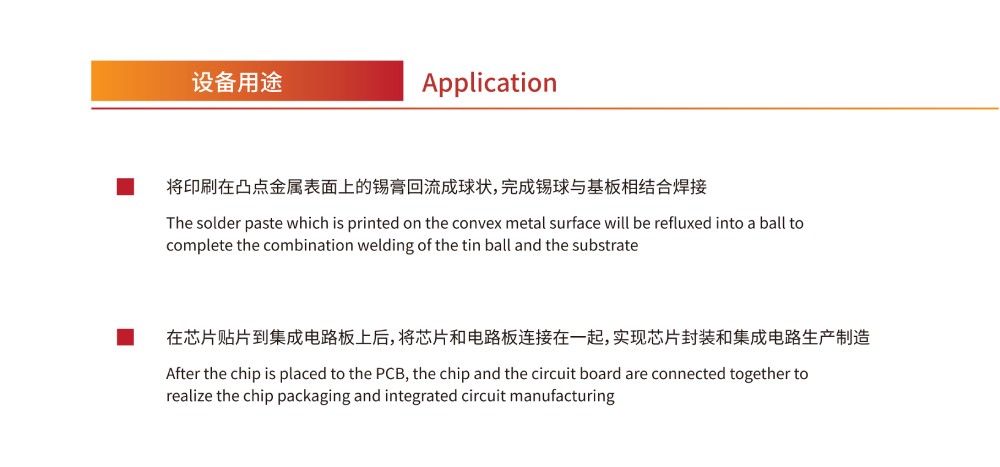 1、將印刷在凸點(diǎn)金屬表面上的錫膏回流成球狀,完成錫球與基板相結(jié)合焊接;